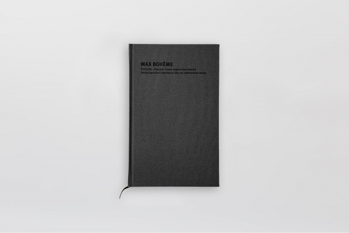 MAX BOHÈME: PLOTLESS – PROTOKOLL (EINES) VERGEBLICHEN DASEINS (VERLAUFSPROTOKOLL) MEDITATION ÜBER EIN ENTFREMDETES DASEIN Leineneinband, 12,5 x 19,7 cm, 96 Seiten, 2017.